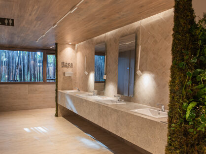 Este baño público trasciende su función convencional para convertirse en una experiencia arquitectónica integral. A través del diseño, la materialidad y la iluminación, se logra un espacio vibrante y en constante diálogo con el entorno. Un lugar que invita a descubrir, interactuar y experimentar la libertad del diseño en su máxima expresión.