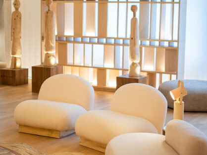 Las paredes se ondulan, se transforman en muebles, se vuelven a plegar, con formas suaves y texturas naturales. Este recurso se utiliza para generar la idea de nido, de cueva, de refugio.