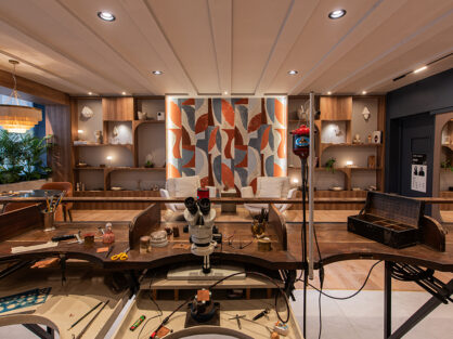 La orfebrería, como la arquitectura y el diseño, es un arte que trasciende en el tiempo, manteniendo su esencia mientras se adapta a nuevas formas y tecnologías. El espacio refleja esta evolución a través de una propuesta donde los materiales, las texturas y la luz dialogan en equilibrio, creando una experiencia sensorial que celebra la maestría del oficio.