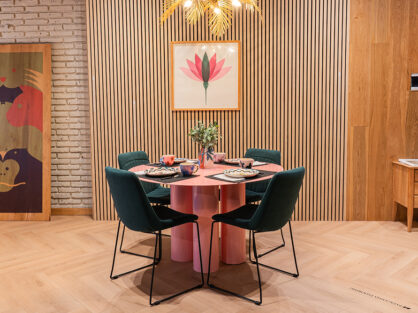El diseño abraza la estructura original del lugar, celebrando la nobleza de los ladrillos a la vista, que dejan al descubierto el pulso del tiempo. Lejos de esconder sus huellas, el proyecto las enaltece, permitiendo que lo antiguo conviva con lo nuevo en un equilibrio sensible. Maderas cálidas y revestimientos de Patagonia Flooring se suman a este diálogo, aportando texturas naturales y una paleta que acaricia la luz.