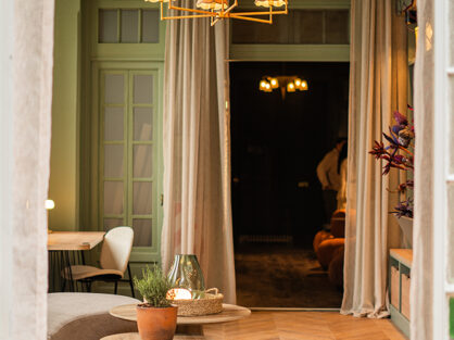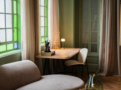 Es un lugar donde nos ponemos cómodos y dejamos el trabajo o jardinería de lado, por lo que planteamos un espacio funcional pero relajado. Trabajamos con la premisa de poner en valor la arquitectura original, destacando elementos como molduras y aberturas e incorporando ciertas piezas de estilo, pero generando una propuesta fresca desde el color y el diseño del mobiliario, sumando arte contemporáneo y vegetación. Así convertimos un ambiente de la casa que suele ser sumamente utilitario en un espacio multifuncional lleno de diseño, encanto y confort.