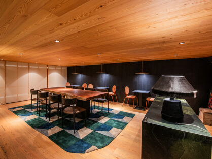 Un maridaje que une a la piedra natural, la madera maciza y la terracota nos sitúan en ambiente rupestre y sincero. Lo que hay es lo que se ve, lo imperfecto se vuelve perfecto. El árbol que deja caer sus hojas, la luz tamizada por cortinas que rozan suavemente el piso, la madera muestra sus vetas. Un resultado honesto, natural y real.