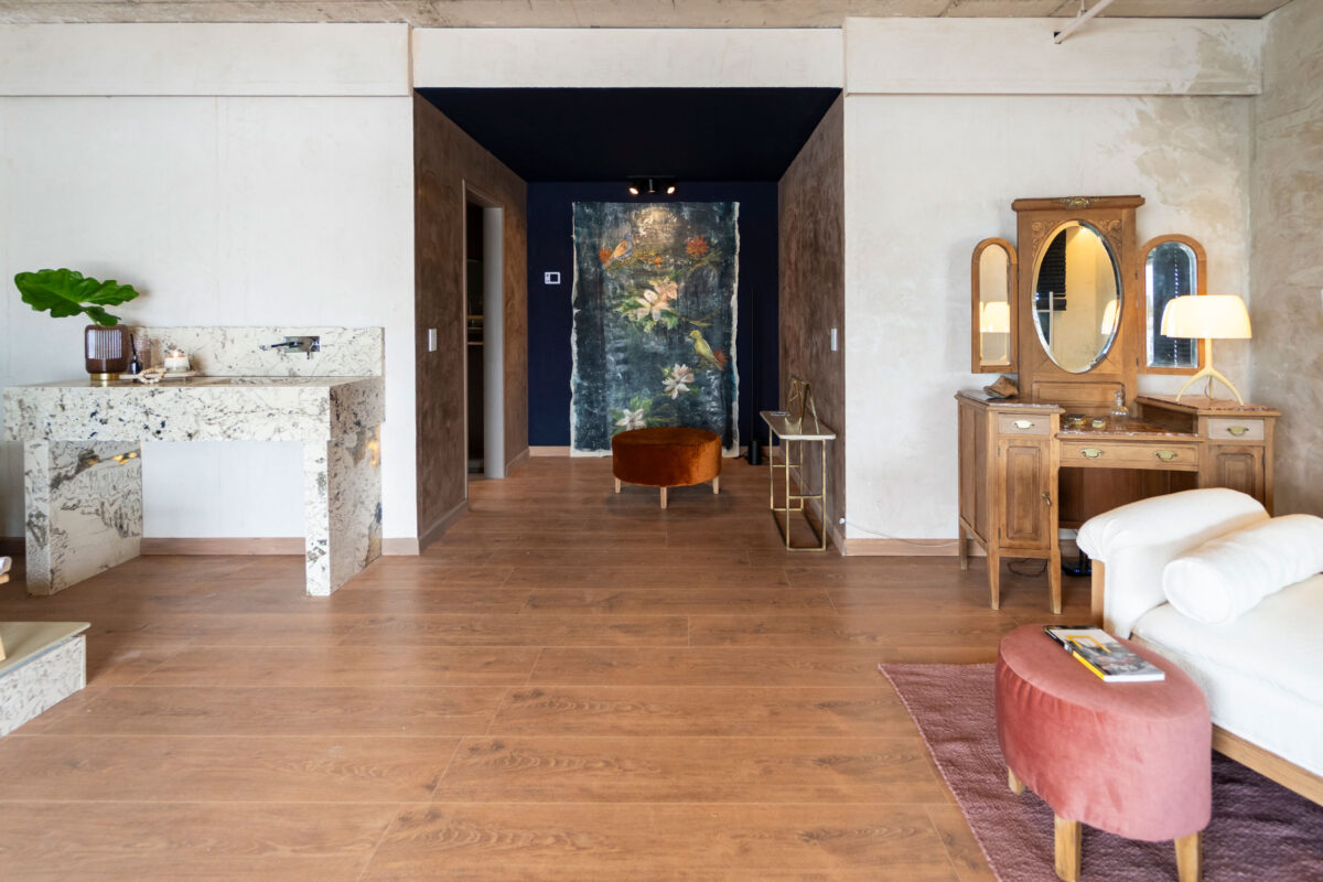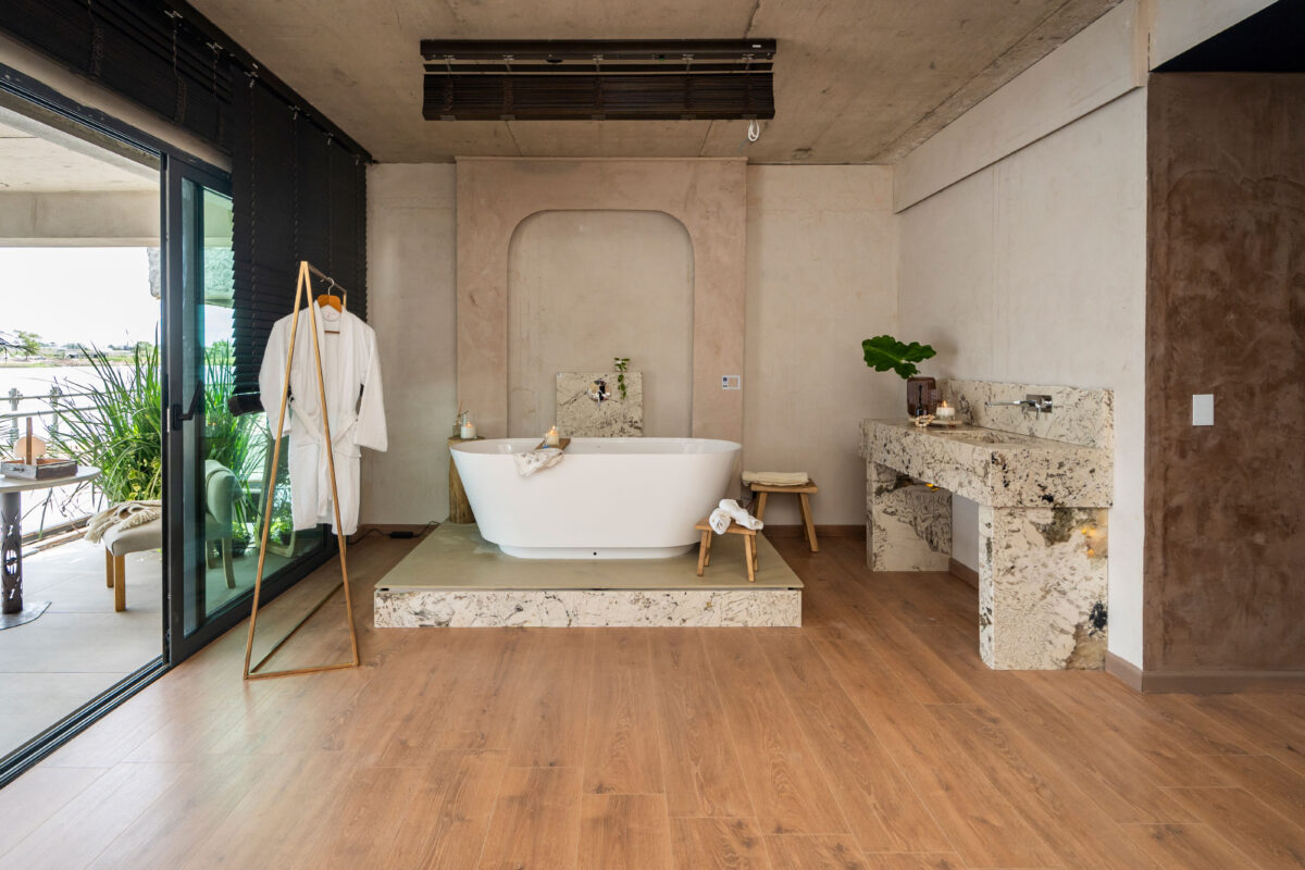 De Antes presenta el Spa de Bienestar Rústico-Natural, un espacio que invita a detener el ritmo, respirar y reconectar con lo esencial. El diseño integra materiales nobles, iluminación cálida y aromas naturales para crear una experiencia sensorial armónica. El recorrido comienza en una recepción con mobiliario en fibras naturales y continúa hacia un área de relax con bañera y luz difusa. Predominan tonos tierra, beige y grises cálidos, junto a maderas claras, lino y algodón. La iluminación escénica y domótica favorecen el descanso, acompañadas por sonido ambiental y vegetación interior. Con foco en la sostenibilidad, se prioriza el uso de materiales locales y naturales, reflejando la calidez, la armonía y el compromiso ambiental que definen el espíritu de De Antes