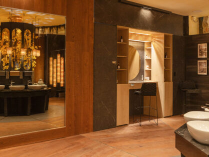 Mea Culpa es un espacio que ofrece conexión con el bienestar combinando luz tenue, calidez y fragancias diseñadas especialmente para este entorno. A su vez, contrasta materiales naturales con accesorios de última generación provistos por Inelec, como ser dispenser de jabón y secamanos automáticos. Esperamos que todo visitante de nuestro espacio pueda disfrutar de esta experiencia.