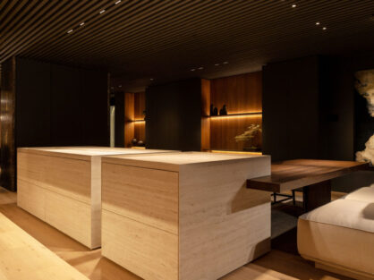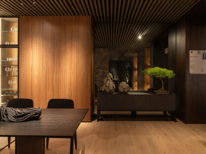 Finalmente y, como representante del diseño Industrial Argentino, Cristian Mohaded, fue convocado por un lado con piezas de mobiliario de la firma Nosten en su línea Madero, y además con objetos de su colección que aportan una mirada distinta – una vuelta a la artesanía – que contrasta con la perfección del mobiliario del espacio.