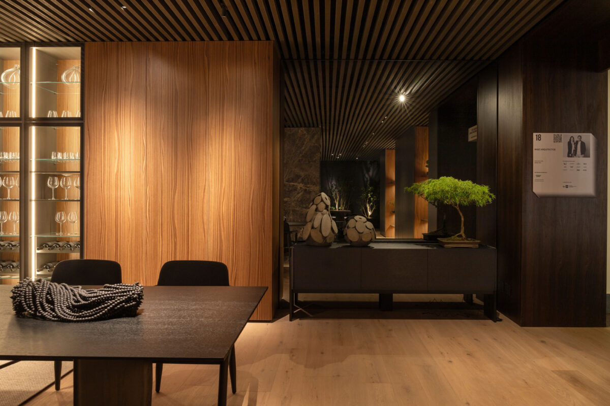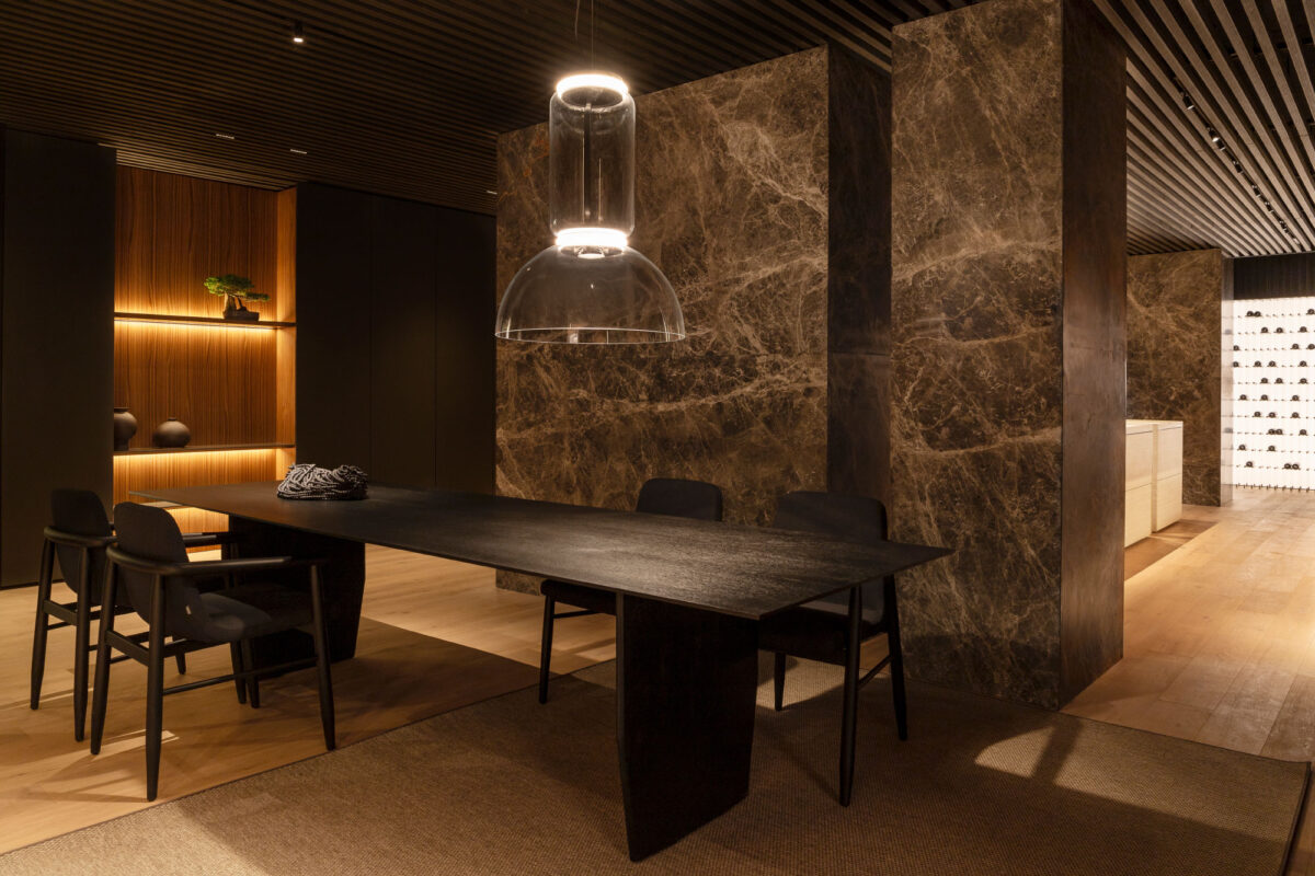 Finalmente y, como representante del diseño Industrial Argentino, Cristian Mohaded, fue convocado por un lado con piezas de mobiliario de la firma Nosten en su línea Madero, y además con objetos de su colección que aportan una mirada distinta – una vuelta a la artesanía – que contrasta con la perfección del mobiliario del espacio.