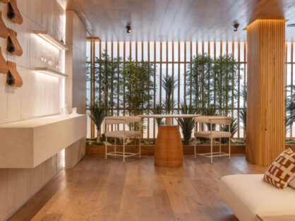 La incorporación de plantas al playroom refuerza la conexión con la naturaleza y contribuye a la atmósfera de calma y bienestar. Las plantas no solo mejoran la calidad del aire, sino que también añaden texturas y colores naturales que complementan la paleta de materiales cálidos y neutros del espacio.