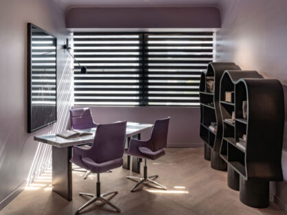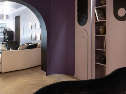 Este lugar está pensado para home office de Gina, una Dj que luego de viajar por todo el mundo decidió residir en Argentina de forma permanente. Tal diseño está pensado como un espacio lúdico de experimentación, donde la energía de la música se va transmutando y manifestando en cada uno de los espacios mediante diversas formas, colores y texturas.