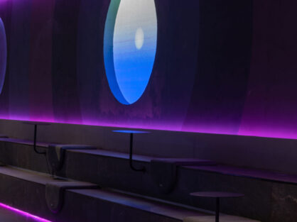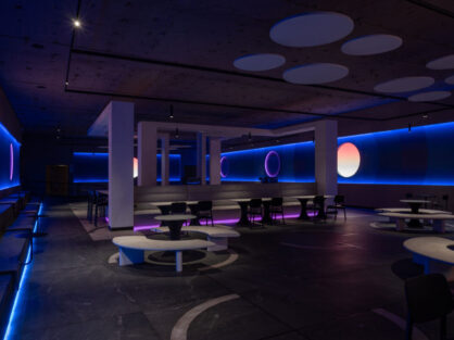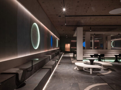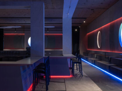 Opuesto Estudio rompió la impresión establecida de una cafetería y probó audazmente una experiencia de iluminación y de color para crear la atmósfera de este espacio.