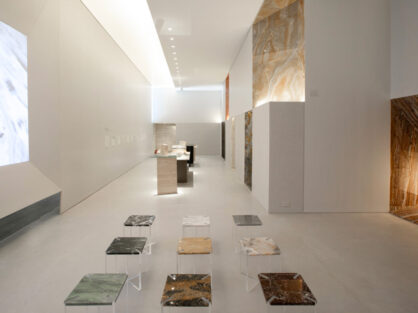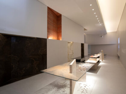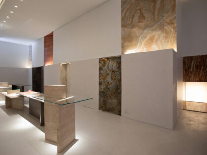 Este espacio invita a sentir la piedra, en una secuencia de color, textura y acabado que despierta la vibración de la tierra, transmitiendo lujo atemporal, autenticidad y una fuerza silenciosa que permanece.