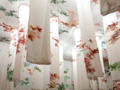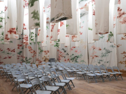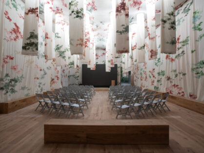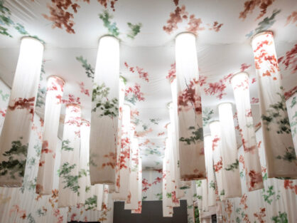 Que al ingresar, sintiera un impacto, sintiera la necesidad de entrar y dejarse abrazar por esta piel. Así decidí cubrirlo por completo con 900m2 de telas intervenidas y poblarlo con un “ejército de lámparas”. Poniendo en evidencia, la importancia del textil en el diseño, aquí nada es perfecto, todo es exuberante…