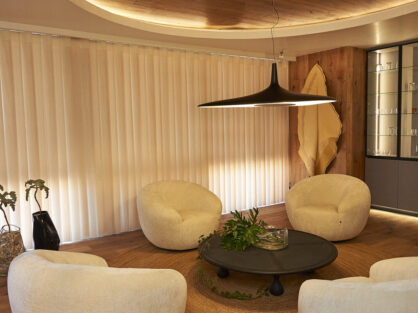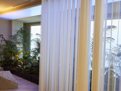 El producto estrella de esta temporada es nuestra cortina Illusion, una innovadora combinación de bandas verticales y telas traslúcidas. Su diseño permite: